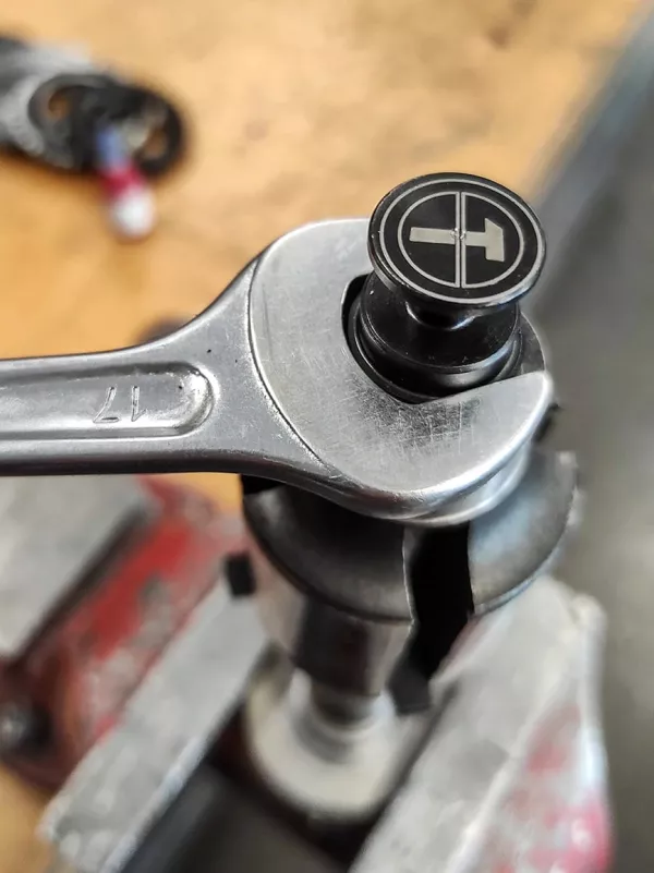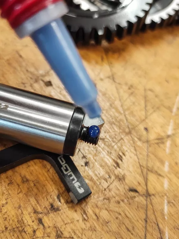 à l'aide d'étain à souder. En raison de l'augmentation de la course, nous visons une cote d'écrasement de 1,3 mm à 1,4 mm et la réglons à l'aide des joints de pied de cylindre fournis.