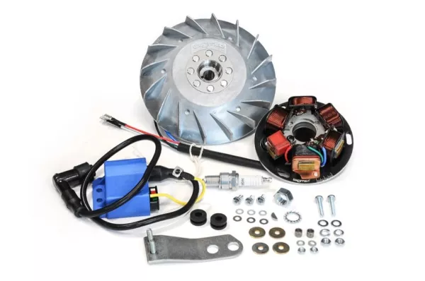 Le carter moteur Malossi est renforcé à de nombreux endroits. De ce fait, lors du montage de l'allumage, il peut y avoir un contact de la plaque de base autour du siège du palier. La plaque de base de l'allumage doit être placée sans tension dans le centrage, il faut donc, au cas par cas, retoucher légèrement la plaque de base et/ou le carter moteur pour assurer un positionnement sans tension de la plaque de base.