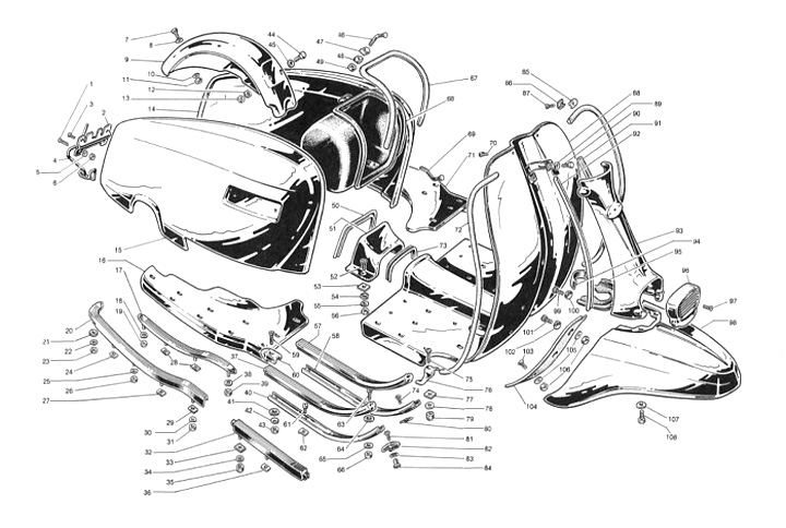 Halter Seitenhaubensicherungsfedern -CASA LAMBRETTA- LI (Serie 3, ab Bj. 09.1967), LIS (ab Bj. 09.1969), SX (ab Bj. 09.1968), DL, GP, J50 (ab Bj. 09.1968), J50 DeLuxe, J50 Special