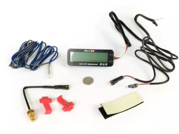 Der mitgelieferte Thermofühler hat eine PT-1/8-Gewindesteigung . Es sind gesondert Thermofühler mit unterschiedlichen Steigungen erhältlich. Optional können wir einen Temperaturfühler zur Montage im Kühlschlauch und einen weiteren Temperaturfühler zur Montage auf luftgekühlten Zylindern anbieten.