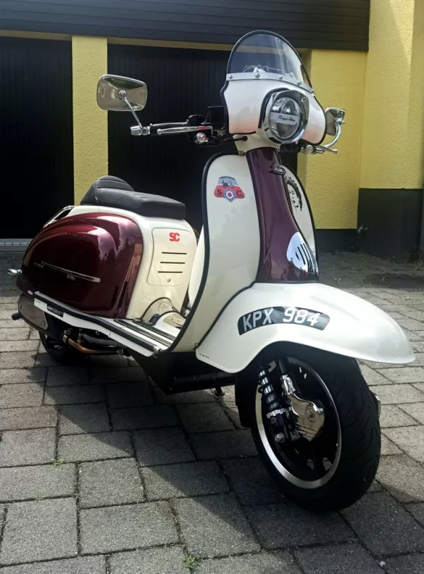 Jag blir omedelbart förälskad. Massor av plåt, avtagbara motorhuvar, ABS, 300 Vespa GTS QUASAR-motor som licensbyggnad med 25 hk inuti och redan en kult i Storbritannien. Inte riktigt anlänt hit ännu, även om en riktigt framgångsrik kopia av en Lambretta 2: a - eller 3: e serien - enligt min mening.