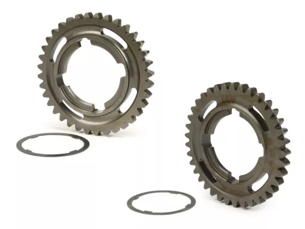 The abbreviation DRT stands for Denis Racing Team. Denis Innocente has found its way into scooter parts production via the Italian acceleration racing scene. With a background of more than twenty years in motorsport, he mainly manufactures transmission and clutch parts for the Vespa today. The Italian scene swears by the DRT parts. Thanks to the various primary and power wheels, you now have unprecedented freedom in grading your transmission. So you can build yourself a gearbox with your desired gradations. From the closely stepped racing gearbox to the tourer gearbox for the shift muffle. For lower mass acceleration, the DRT gears are lighter.