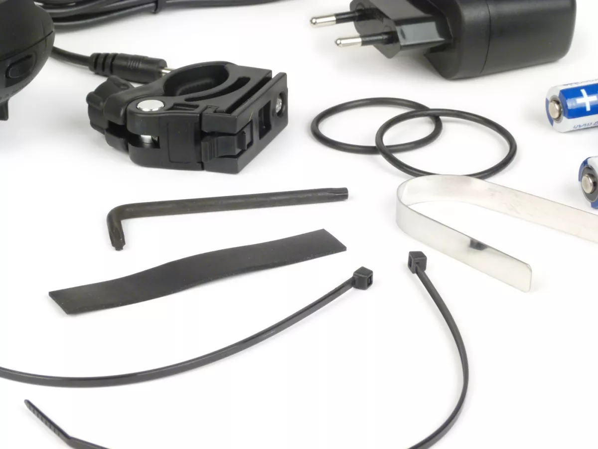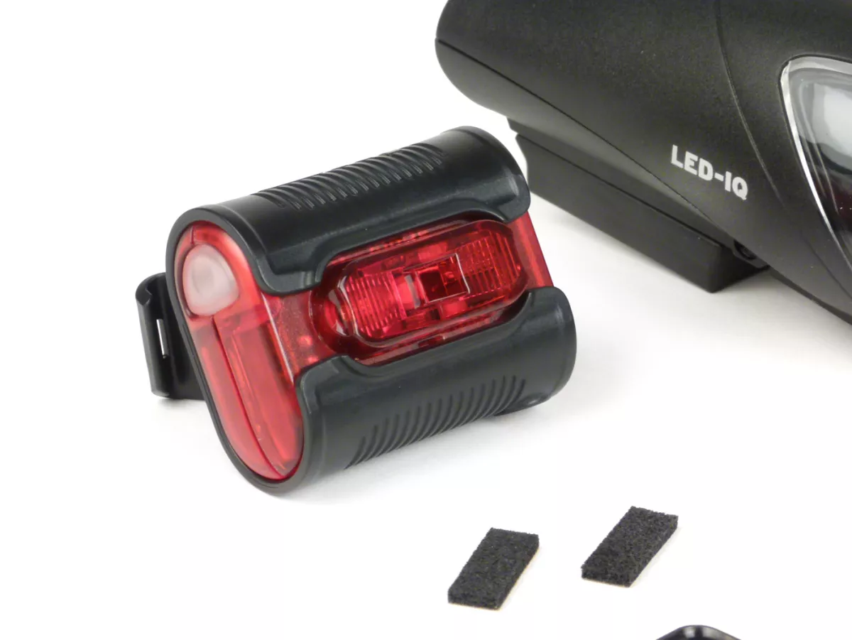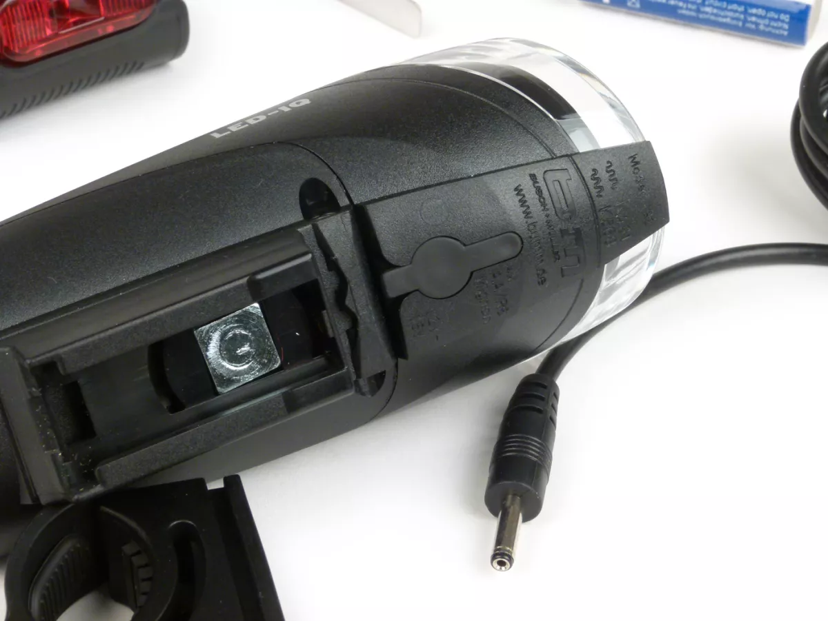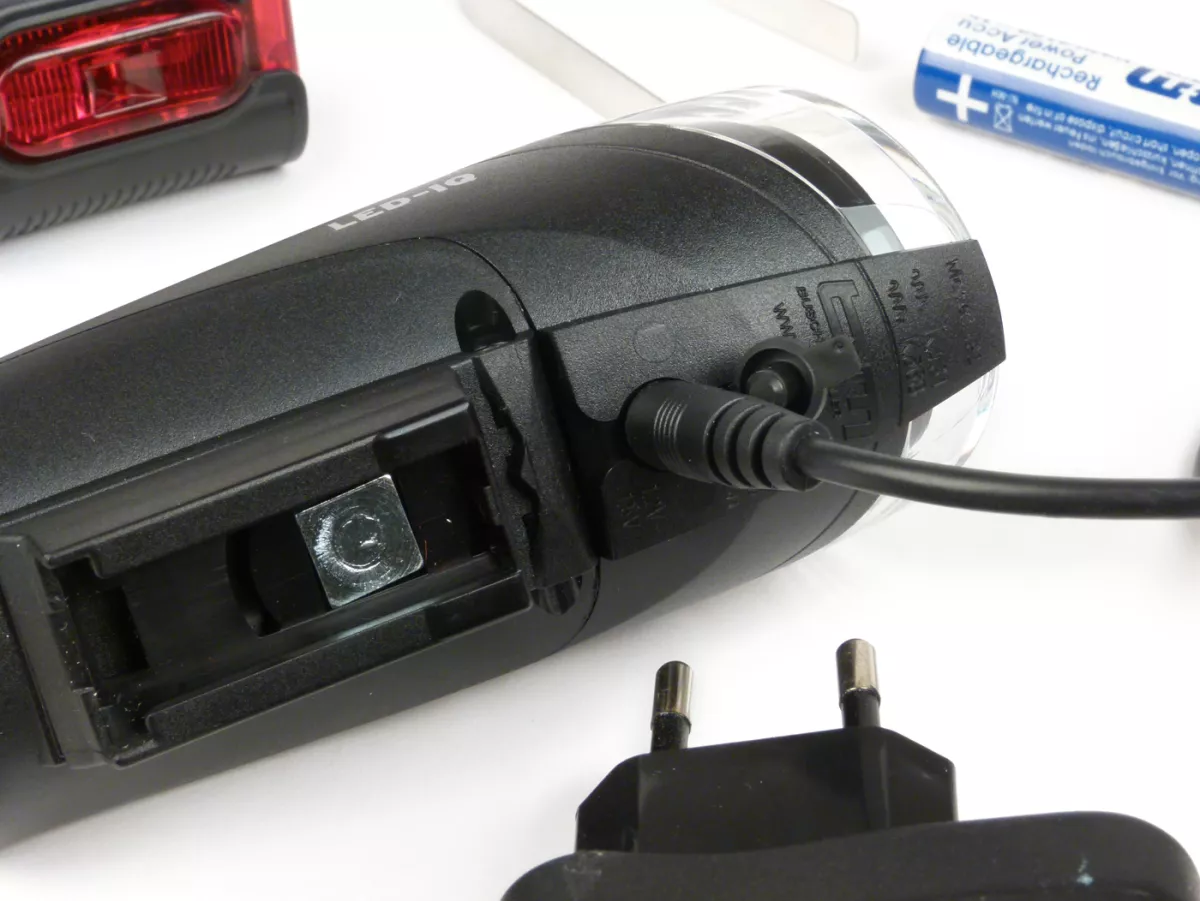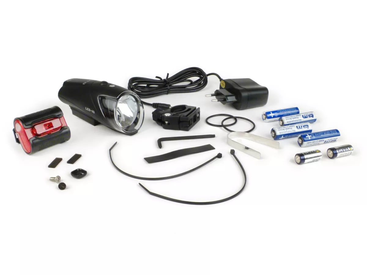 High-performance LED with 100.000 hours lifetime brilliant white light with xenon effect highly efficient comfort electronics with 90% efficiency integrated cooling system capacity and charge status display in only 4-5 hours fully charged two switch positions: high power mode: 40 lux (5 hours) city eco mode: 10 lux (20 hours) safety electronics: no overcharging of rechargeable batteries & detection of batteries to prevent accidental charging Handlebar adapter with quick-release fastener, can be rotated and swivelled, headlight can also be removed Use of batteries or rechargeable batteries possible (Mignon, AA) The processor-controlled charging electronics integrated in the headlight (with minus-delta U switch-off) enables charging of batteries of different capacities (e.g.e.g. 4 x 2,100 mAh or 4 x 2,500 mAh) weight Headlamp: approx. 140g (without batteries) optional: 4 NiMH batteries (2.100 mAh), without memory effect optional: current-regulated power supply unit for charging taillight: IXBACK Senso (382S):