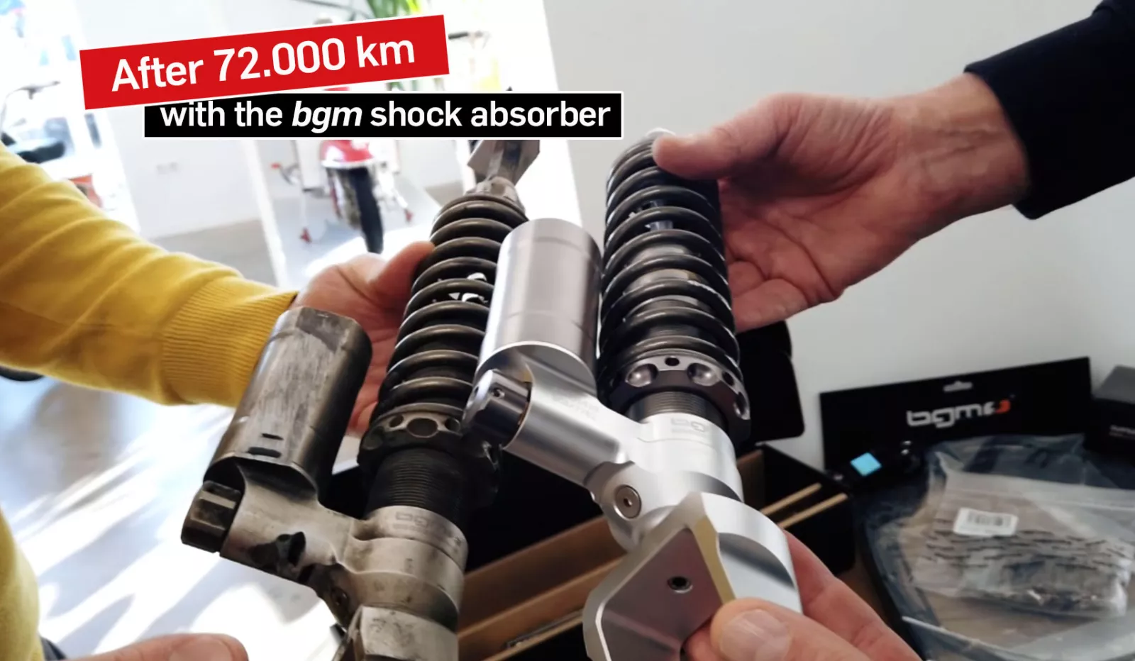 We are always thrilled when someone comes along on a great adventure and are very interested to see how they have prepared for the journey and which parts are best able to withstand the strain. Rarely do we have the opportunity to see the wear and tear of each part after a great trip, and Etze's adventure with Vesparicana is a very good example of this. He traveled with various bgmparts and after this adventure and years later Jan visited us in SC to show us these parts. Jan is the mechanic of Atze and his Vespa Elsi and he knows exactly which parts deserve a rest. For example, the bgm shock absorber that was fitted to Elsi. Due to the heavy luggage, the frame was warped in the area of the upper shock absorber mount. As a result, the shock absorber's reservoir was in permanent contact with the chassis. Due to the work of the shock absorber and enemy contact, the shock absorber was exposed up to the O-rings. And if we consider that the weight of the luggage was almost 120kg at the beginning and later about 100kg of which were 10l gasoline, 5l water, almost 30kg tools and spare parts and the rest was equipment like tent, stove, sleeping bag and clothes, all this plus Atze as driver. Then it's clear what would happen, and although the shock absorber still does its job, it's time for a replacement as a new adventure is approaching.