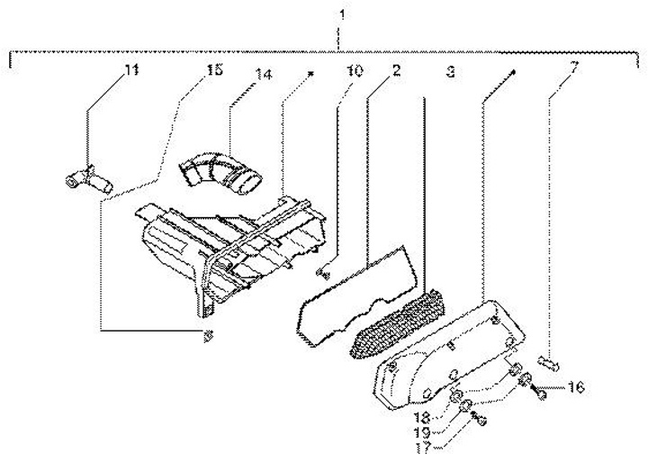 Air filter box -PIAGGIO- Vespa ET2 50 (ZAPC16000, ZAPC38100), Vespa LX 50 (ZAPC38101, ZAPC38400), Vespa Primavera 50 (ZAPC53200), Vespa S 50 (ZAPC38402), Gilera DNA 50 (ZAPC27000), Gilera Ice 50 (ZAPC30000), Gilera Runner 50 (ZAPC36200, ZAPC36400, ZAPC461
