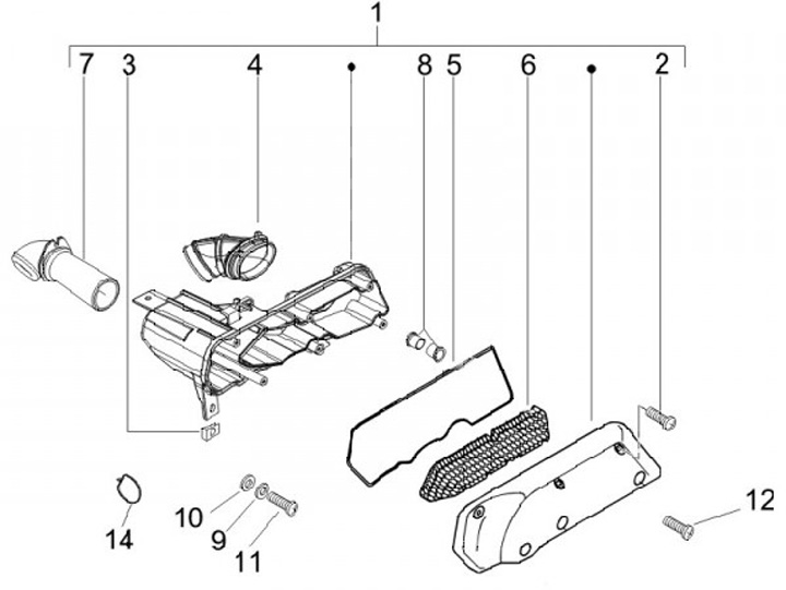 Air filter box -PIAGGIO- Vespa ET2 50 (ZAPC16000, ZAPC38100), Vespa LX 50 (ZAPC38101, ZAPC38400), Vespa Primavera 50 (ZAPC53200), Vespa S 50 (ZAPC38402), Gilera DNA 50 (ZAPC27000), Gilera Ice 50 (ZAPC30000), Gilera Runner 50 (ZAPC36200, ZAPC36400, ZAPC461