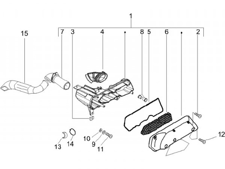Intake for air filter box -PIAGGIO- Vespa LX 50 (ZAPC38101, ZAPC38104), Vespa LXV 50 (ZAPC38102), Vespa Primavera 50 (ZAPC53200), Vespa S 50 (ZAPC38103), Vespa Sprint 50 (ZAPC53201), Gilera Stalker 50 (ZAPC40100, ZAPC40101, ZAPC40102), Gilera Storm 50 (ZA