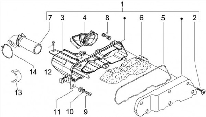 Intake for air filter box -PIAGGIO- Vespa LX 50 (ZAPC38101, ZAPC38104), Vespa LXV 50 (ZAPC38102), Vespa Primavera 50 (ZAPC53200), Vespa S 50 (ZAPC38103), Vespa Sprint 50 (ZAPC53201), Gilera Stalker 50 (ZAPC40100, ZAPC40101, ZAPC40102), Gilera Storm 50 (ZA