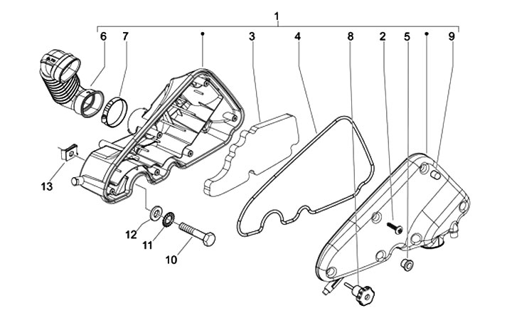 Intake hose for air filter box -PIAGGIO- Vespa LX 50-150, LXV 125, S 50-150, Primavera 50, Sprint 50, Piaggio Fly 50-150, Liberty 125-150, TPH 125, Aprilia Mojito 125, Sport City One 125, SR Motard 50-125