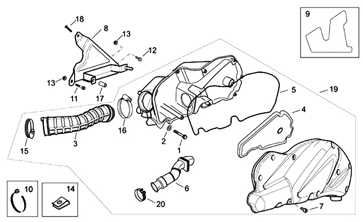 Air filter box compl. -PIAGGIO- Beverly 400-500, MP3 400-500, X8 400, XEvo 400, Gilera Fuoco 500, Aprilia Atlantc 400-500, Scarabeo Light 400-500