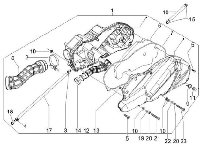 Air filter box compl. -PIAGGIO- Beverly 400-500, MP3 400-500, X8 400, XEvo 400, Gilera Fuoco 500, Aprilia Atlantc 400-500, Scarabeo Light 400-500