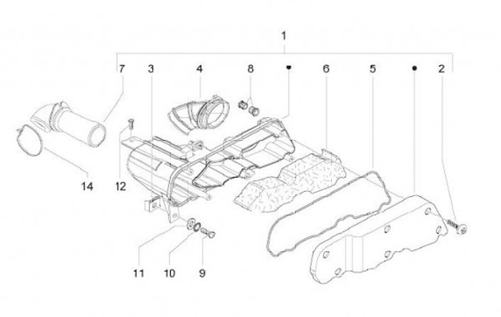 Intake for air filter box -PIAGGIO- Vespa LX 50 (ZAPC38101, ZAPC38104), Vespa LXV 50 (ZAPC38102), Vespa Primavera 50 (ZAPC53200), Vespa S 50 (ZAPC38103), Vespa Sprint 50 (ZAPC53201), Gilera Stalker 50 (ZAPC40100, ZAPC40101, ZAPC40102), Gilera Storm 50 (ZA