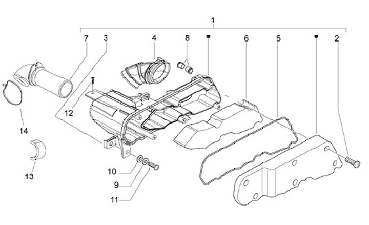 Intake for air filter box -PIAGGIO- Vespa LX 50 (ZAPC38101, ZAPC38104), Vespa LXV 50 (ZAPC38102), Vespa Primavera 50 (ZAPC53200), Vespa S 50 (ZAPC38103), Vespa Sprint 50 (ZAPC53201), Gilera Stalker 50 (ZAPC40100, ZAPC40101, ZAPC40102), Gilera Storm 50 (ZA