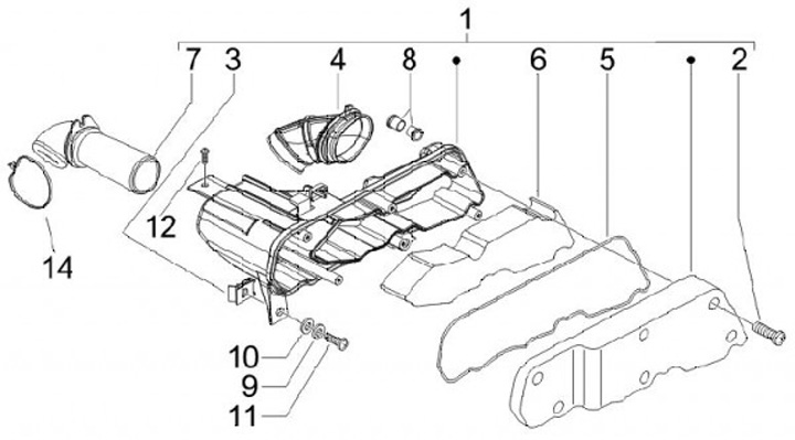 Intake for air filter box -PIAGGIO- Vespa LX 50 (ZAPC38101, ZAPC38104), Vespa LXV 50 (ZAPC38102), Vespa Primavera 50 (ZAPC53200), Vespa S 50 (ZAPC38103), Vespa Sprint 50 (ZAPC53201), Gilera Stalker 50 (ZAPC40100, ZAPC40101, ZAPC40102), Gilera Storm 50 (ZA