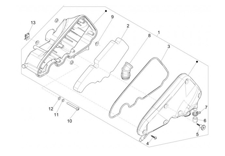 Air filter box compl. -PIAGGIO- Vespa LX 50 4T, Sprint 50 4T, Primavera 50 4T, S 50 4T, Piaggio Fly 50 4T, Aprilia Sport City One 50 4T
