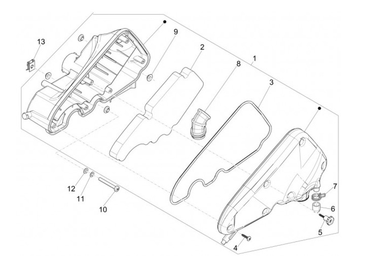 Air filter box compl. -PIAGGIO- Vespa LX 50 4T, Sprint 50 4T, Primavera 50 4T, S 50 4T, Piaggio Fly 50 4T, Aprilia Sport City One 50 4T