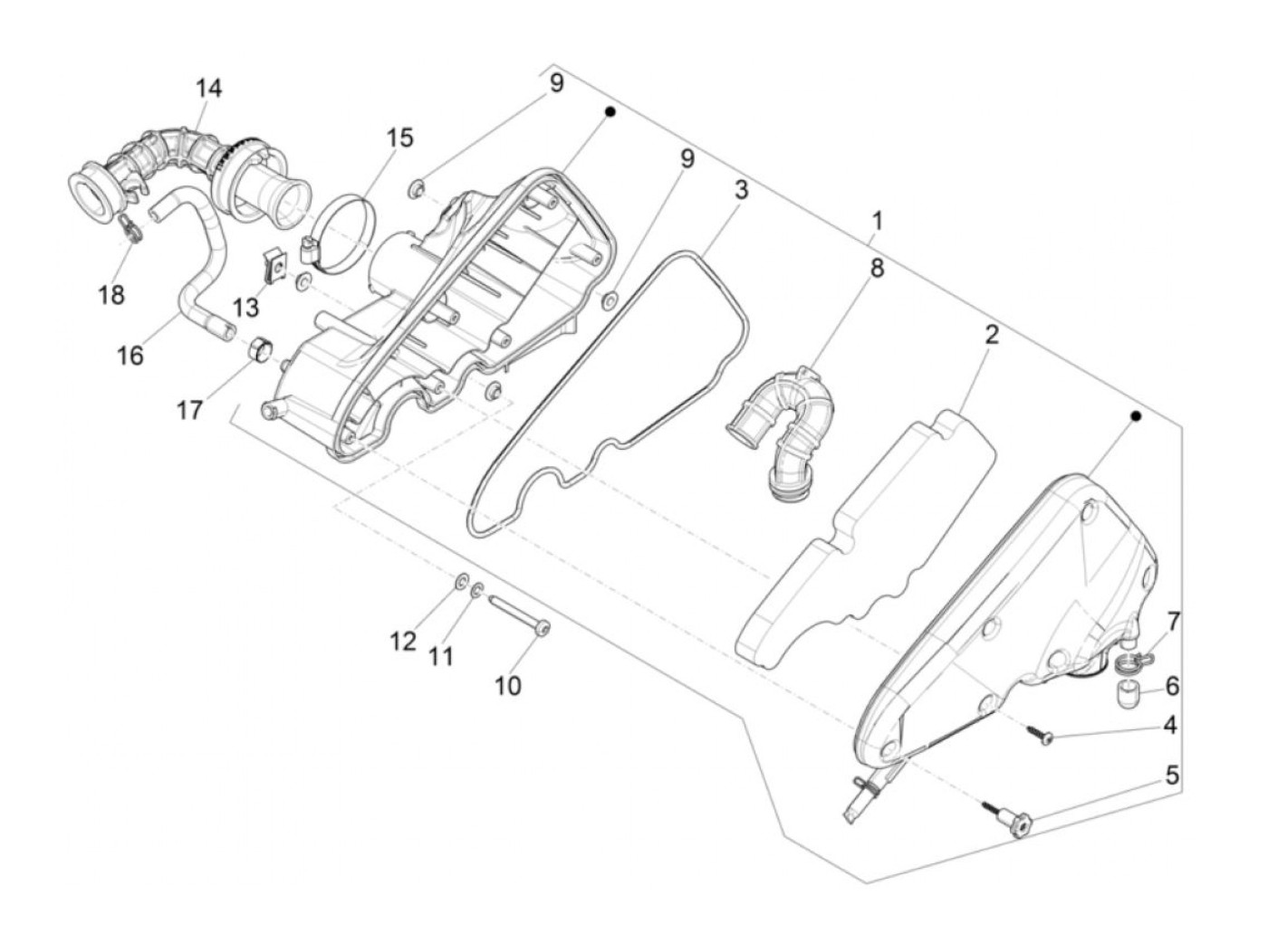 Intake manifold -POLINI- Piaggio 125-150 4T 2V AC- (1st generation / pre Leader) - Piaggio Sfera, Liberty, Aprilia Habana, Mojito, Vespa ET4, Italjet Torpedo, Benelli Adiva - 1 vacuum connection