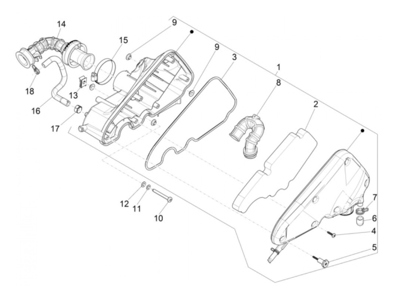 Air filter box compl. -PIAGGIO- Vespa Primavera 50 2018-2023, Sprint 50 2018-2023