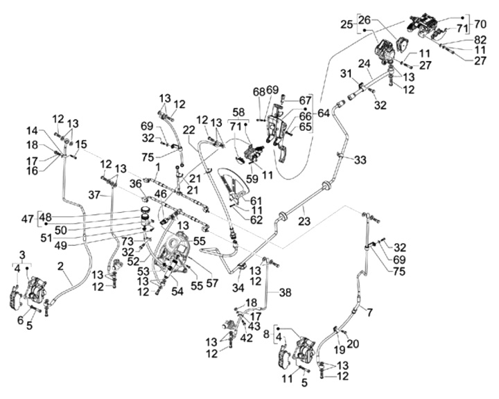 Brake caliper, front rhs -HENG TONG- Gilera Fuoco (ZAPM611), Piaggio MP3 (ZAPM472, ZAPM473, ZAPM591, ZAPM592, ZAPM631, ZAPM632, ZAPM633, ZAPM641, ZAPM642, ZAPM643, ZAPM651), MP3 Yourban (ZAPM711, ZAPM712, ZAPM721, ZAPM751)
