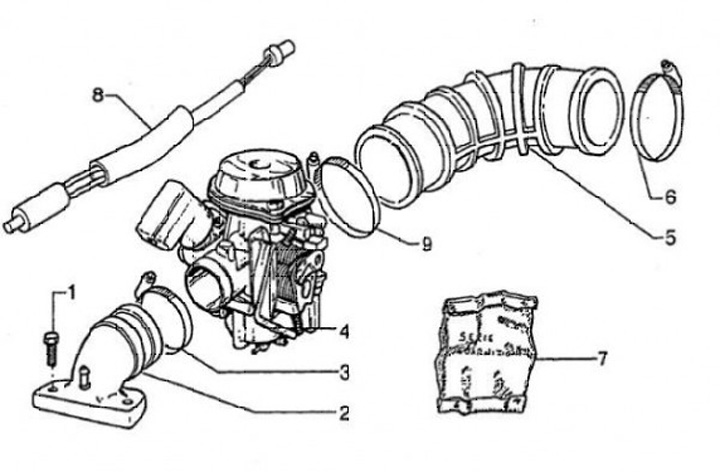 Intake manifold -PIAGGIO- 50cc 4T 2V- Vespa ET4 50 4T (ZAPC26), Piaggio Liberty 50 4T (ZAPC282, ZAPC422), ZIP II 50 4T (ZAPC250), Aprilia Scarabeo 50 4T (ZD4TG), Derbi Atlantis 50 4T (VTHAT1B1A) - 2 vacuum connections