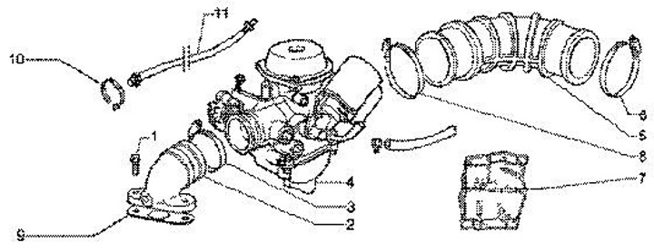 Intake hose carburetor/air filter box -PIAGGIO- Vespa ET4 (ZAPC19, Leader), LX, LXV, S125, S150, Aprilia Sportcity (ZD4SG), Piaggio Fly125/150, Liberty, Skipper 4T, TPH125 4T, X8 125/150