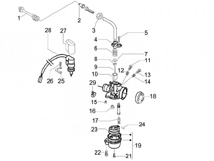Float chamber (with drain) -DELLORTO- PHVA Vergaser Ø=17,5mm (Piaggio Engines)