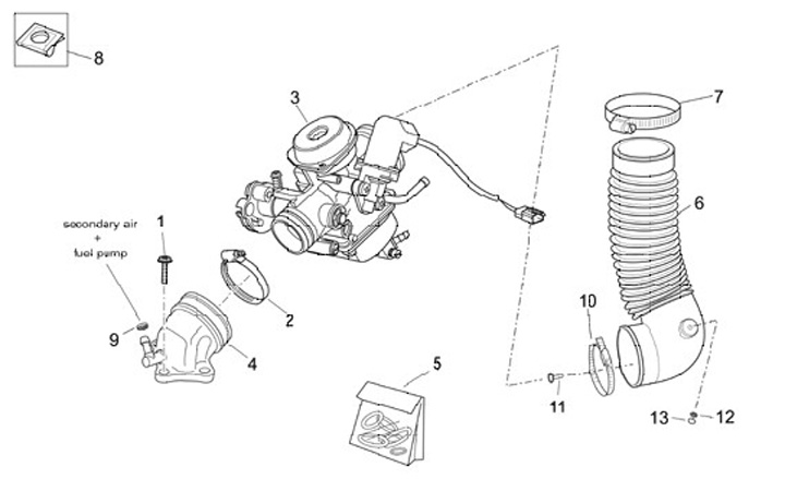 Intake manifold -PIAGGIO 125-250cc 4T 4V LC Leader/Quasar- 2 Vacuum connections- Aprilia Atlatic, Scarabeo, Vespa GTL, Derbi GP1, Gilera Runner VX, VXR, Piaggio Beverly, X8, X9