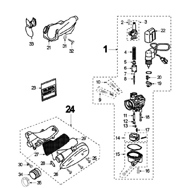 Carburator -DELLORTO 17,5mm PHVA TS- Automatic choke, Minarelli 50 cc - CS=23mm-