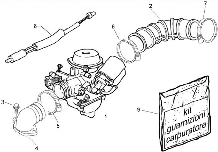 Carburettor -PIAGGIO- Keihin CVK18 Z61F- Aprilia Sport City One, Scarabeo, Vespa S 50, LX, LXV, Primavera, Sprint, Piaggio Fly, Liberty, Zip II