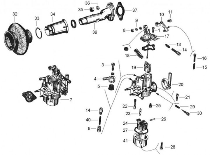 Carburator -DELLORTO SHB 16/15 F- 16mm SHB- Vespa PK50 S/XL - Carburettor with O-ring seal