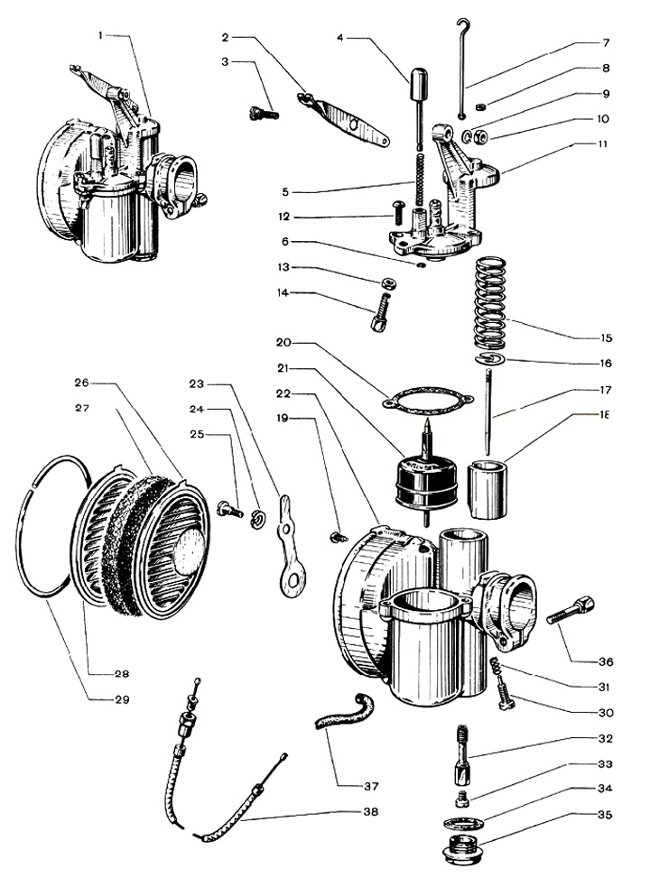 Intake manifold -POLINI- Piaggio 125-150 4T 2V AC- (1st generation / pre Leader) - Piaggio Sfera, Liberty, Aprilia Habana, Mojito, Vespa ET4, Italjet Torpedo, Benelli Adiva - 1 vacuum connection