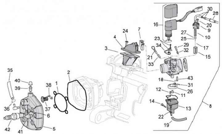 Carburettor -PIAGGIO- Dell'Orto PHVA 17,5 ID- Piaggio Zip SP2, Aprilia SR50 Street, SR50 R, Derbi GP1