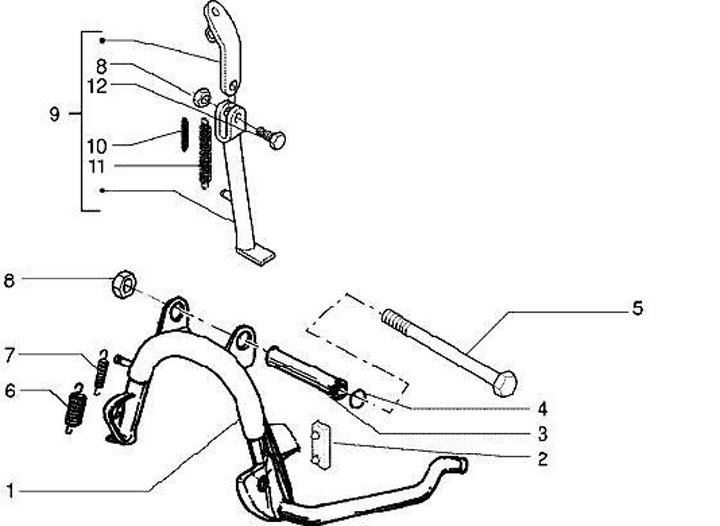 Centre stand -PIAGGIO- Gilera DNA 125 (ZAPM26000), Gilera DNA 180 (ZAPM26000), Gilera Runner 125 (ZAPM24200, ZAPM24100, ZAPM24000), Gilera Runner 200 (ZAPM24300)