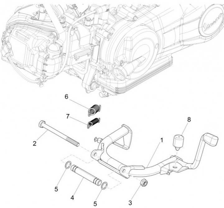 Centre stand -PIAGGIO- Vespa Primavera 50 (ZAPC53100, ZAPC53300, ZAPC53302, ZAPCA0100, ZAPCA0200, ZAPCA0102)