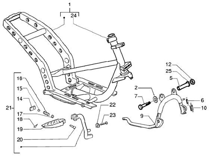 Centre stand -PIAGGIO- Gilera DNA 125 (ZAPM26000), Gilera DNA 180 (ZAPM26000), Gilera Runner 125 (ZAPM24200, ZAPM24100, ZAPM24000), Gilera Runner 200 (ZAPM24300)