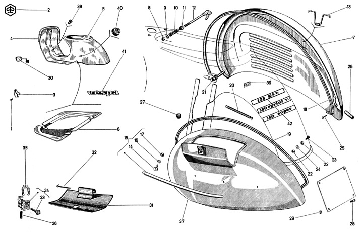 Cascade lettering -OEM QUALITY- Vespa Piaggio hexagon - Vespa Sprint (from year 1965), Sprint Veloce (from year 1969), Rally180 (VSD1T) (from year 1968), Rally200 (VSE1T) (from year 1972), GT125 (from year 1966), GTR125 (from year 1969), TS