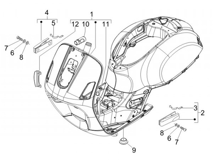 Support for tool box, radiator right hand side -PIAGGIO- Vespa GT 250 (ZAPM45102), Vespa GTS 125 (ZAPM31300, ZAPMA3100, ZAPMA3200, ZAPMA3700), Vespa GTS 150 (ZAPMA3200, ZAPMA3100), Vespa GTS 250 (ZAPM45100, ZAPM45101), Vespa GTS 300 (ZAPM45200, ZAPM45202,
