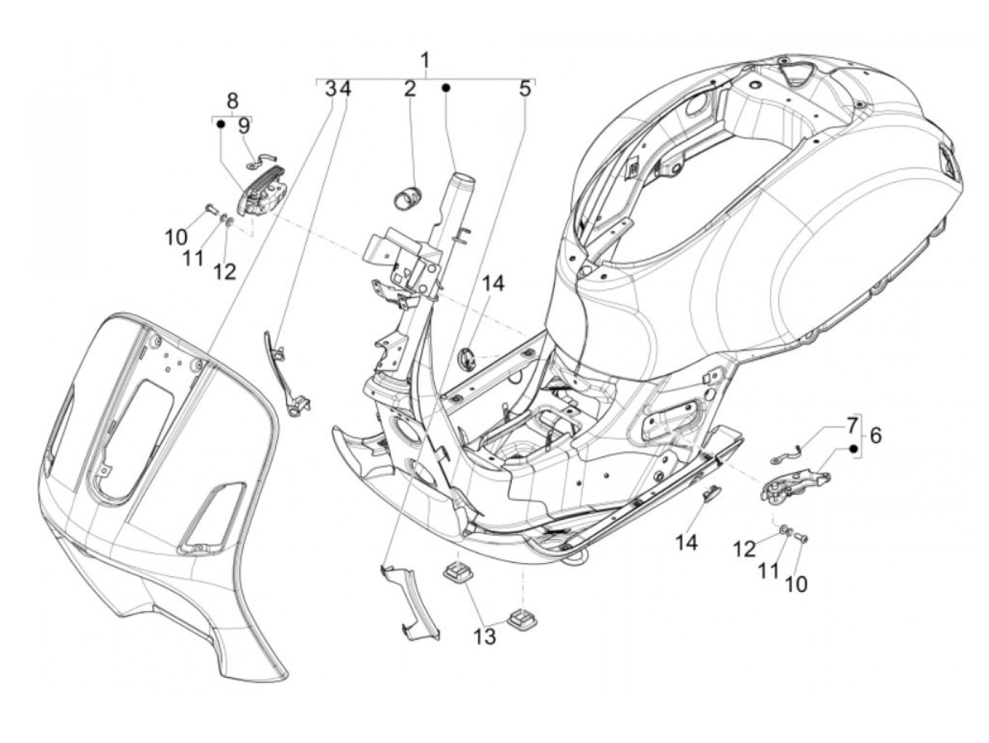 Legshield -PIAGGIO- Vespa GT 250 (ZAPM45102), Vespa GT L 125 (ZAPM31101), Vespa GTS 125 (ZAPM31300, ZAPMA3100, ZAPMA3200), Vespa GTS 150 (ZAPMA3200, ZAPMA3100), Vespa GTS 250 (ZAPM45100, ZAPM45101), Vespa GTS 300 (ZAPM45200, ZAPM45202, ZAPMA3300), Vespa G