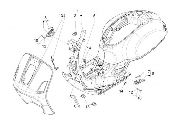 Legshield -PIAGGIO- Vespa GT 250 (ZAPM45102), Vespa GT L 125 (ZAPM31101), Vespa GTS 125 (ZAPM31300, ZAPMA3100, ZAPMA3200), Vespa GTS 150 (ZAPMA3200, ZAPMA3100), Vespa GTS 250 (ZAPM45100, ZAPM45101), Vespa GTS 300 (ZAPM45200, ZAPM45202, ZAPMA3300), Vespa G