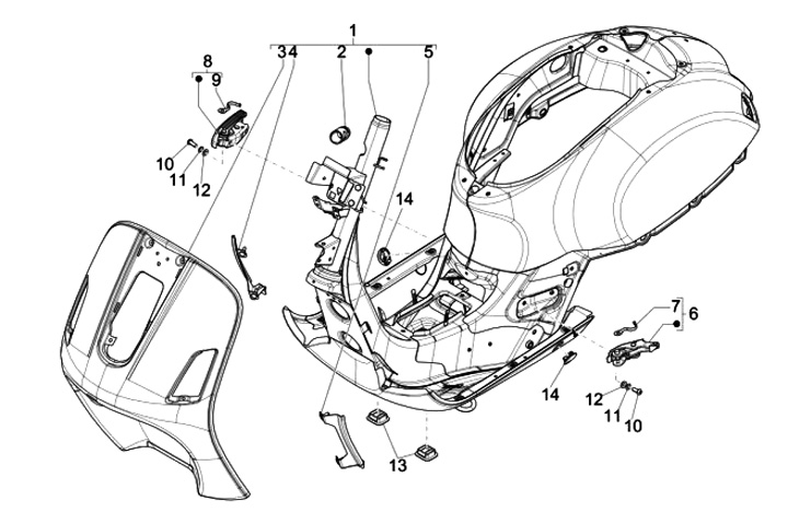 Legshield -PIAGGIO- Vespa GT 250 (ZAPM45102), Vespa GT L 125 (ZAPM31101), Vespa GTS 125 (ZAPM31300, ZAPMA3100, ZAPMA3200), Vespa GTS 150 (ZAPMA3200, ZAPMA3100), Vespa GTS 250 (ZAPM45100, ZAPM45101), Vespa GTS 300 (ZAPM45200, ZAPM45202, ZAPMA3300), Vespa G