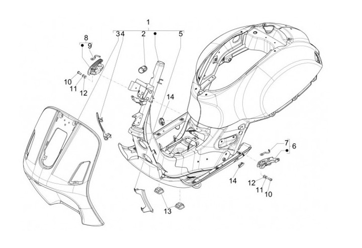 Legshield -PIAGGIO- Vespa GT 250 (ZAPM45102), Vespa GT L 125 (ZAPM31101), Vespa GTS 125 (ZAPM31300, ZAPMA3100, ZAPMA3200), Vespa GTS 150 (ZAPMA3200, ZAPMA3100), Vespa GTS 250 (ZAPM45100, ZAPM45101), Vespa GTS 300 (ZAPM45200, ZAPM45202, ZAPMA3300), Vespa G
