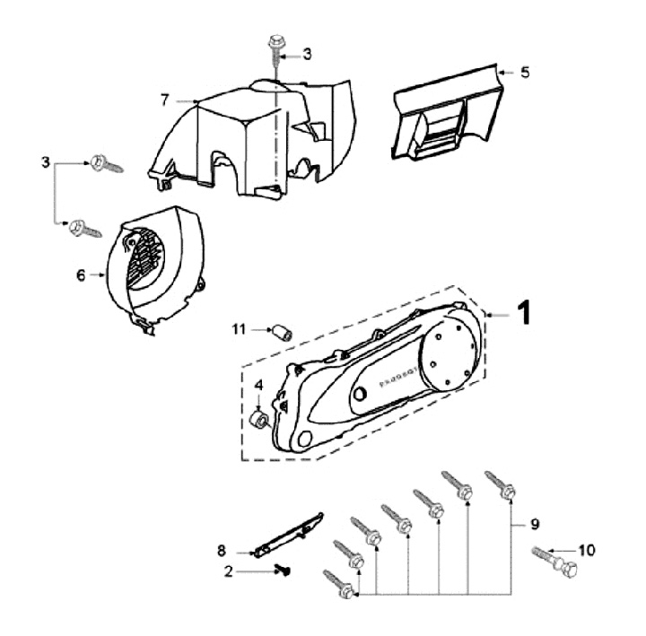 Flywheel cover -PEUGEOT- Peugeot 50cc AC vertical cylinder - SPEEDFIGHT1 50 cc AC, SPEEDFIGHT2 50 cc AC, TKR50, TREKKER50, VIVACITY50, ELYSEO50, SQUAB50, SV50, ZENITH50, BUXY50, ELYSTAR50, LOOXOR50, SPEEDAKE