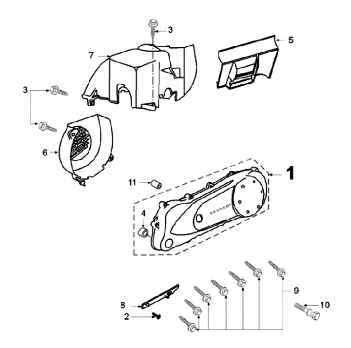 Flywheel cover -PEUGEOT- Peugeot 50cc AC vertical cylinder - SPEEDFIGHT1 50 cc AC, SPEEDFIGHT2 50 cc AC, TKR50, TREKKER50, VIVACITY50, ELYSEO50, SQUAB50, SV50, ZENITH50, BUXY50, ELYSTAR50, LOOXOR50, SPEEDAKE