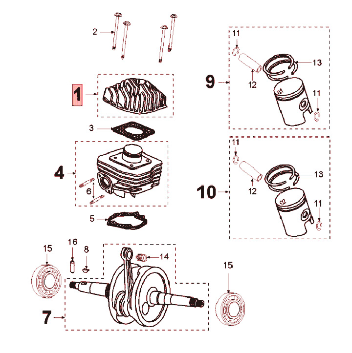 Cylinder (Aluminium, piston Pulsair), crankshaft