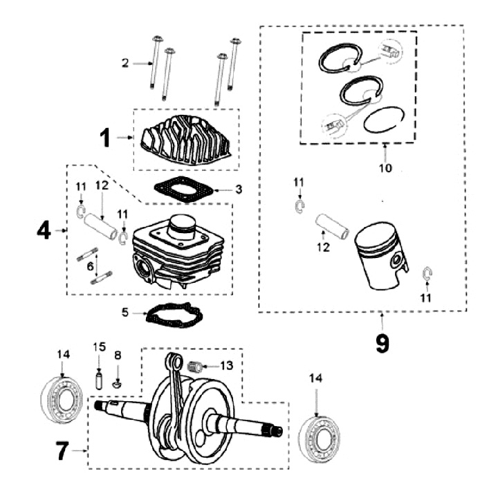 Cylinder (cast iron, piston Pulsair), crankshaft