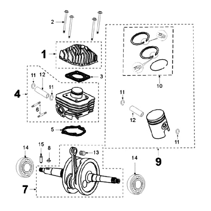 Cylinder (cast iron, piston Pulsair), crankshaft