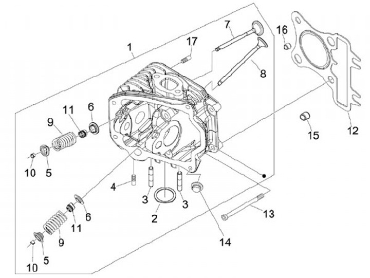 Cylinder head incl. valves and springs -PIAGGIO 125/150ccm, LEADER, 2V- Vespa ET4, LX, LXV, S, Piaggio Fly, Liberty, Skipper, TPH, X8 Street, ZIP2, Aprilia Mojito, SR Motard, Benelli Adiva, Derbi Boulevard, Sonar, Italjet Torpedo
