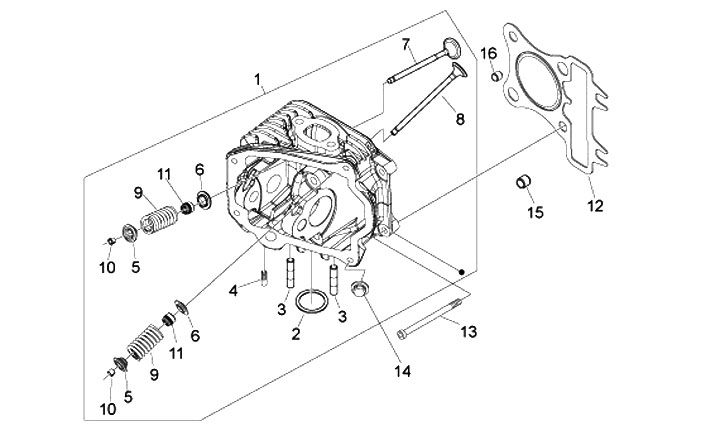 Cylinder head incl. valves and springs -PIAGGIO 125/150ccm, LEADER, 2V- Vespa ET4, LX, LXV, S, Piaggio Fly, Liberty, Skipper, TPH, X8 Street, ZIP2, Aprilia Mojito, SR Motard, Benelli Adiva, Derbi Boulevard, Sonar, Italjet Torpedo