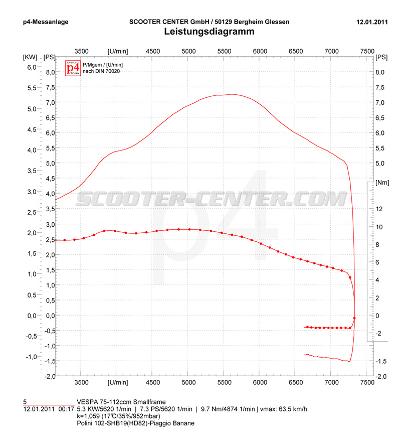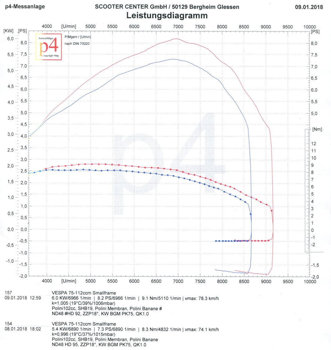 The Polini is a pleasant tourer with a powerful torque from the lowest rev cellar. Polini states 6 kW at 6,500 rpm and a final speed of 95 km/h that can be reached with this. The compression ratio is 11.2:1.
