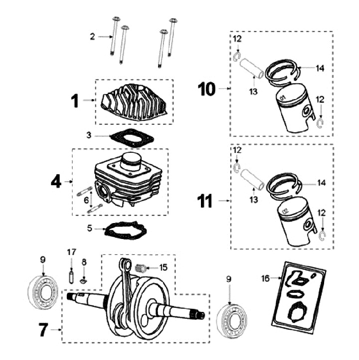 Cylinder without cover, crankshaft